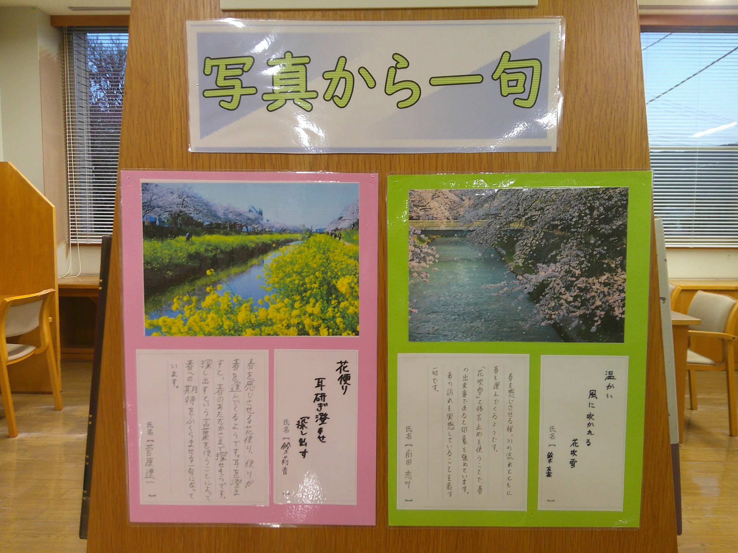 現在、館内にて稲取中学校3年生が写真から詠んだ俳句の展示をしています。(~3/11)